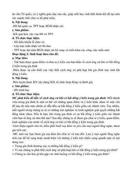 -Hiểu được sự cần thiết của việc biết cách ứng xử phù hợp khi gia đình nảy sinh bất đồng ý kiến. b. Nội dung: