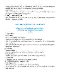 “ỨNG XỬ KHI CÓ BẤT ĐỒNG Ý KIẾN TRONG GIA ĐÌNH” I. MỤC TIÊU 1. Kiến thức