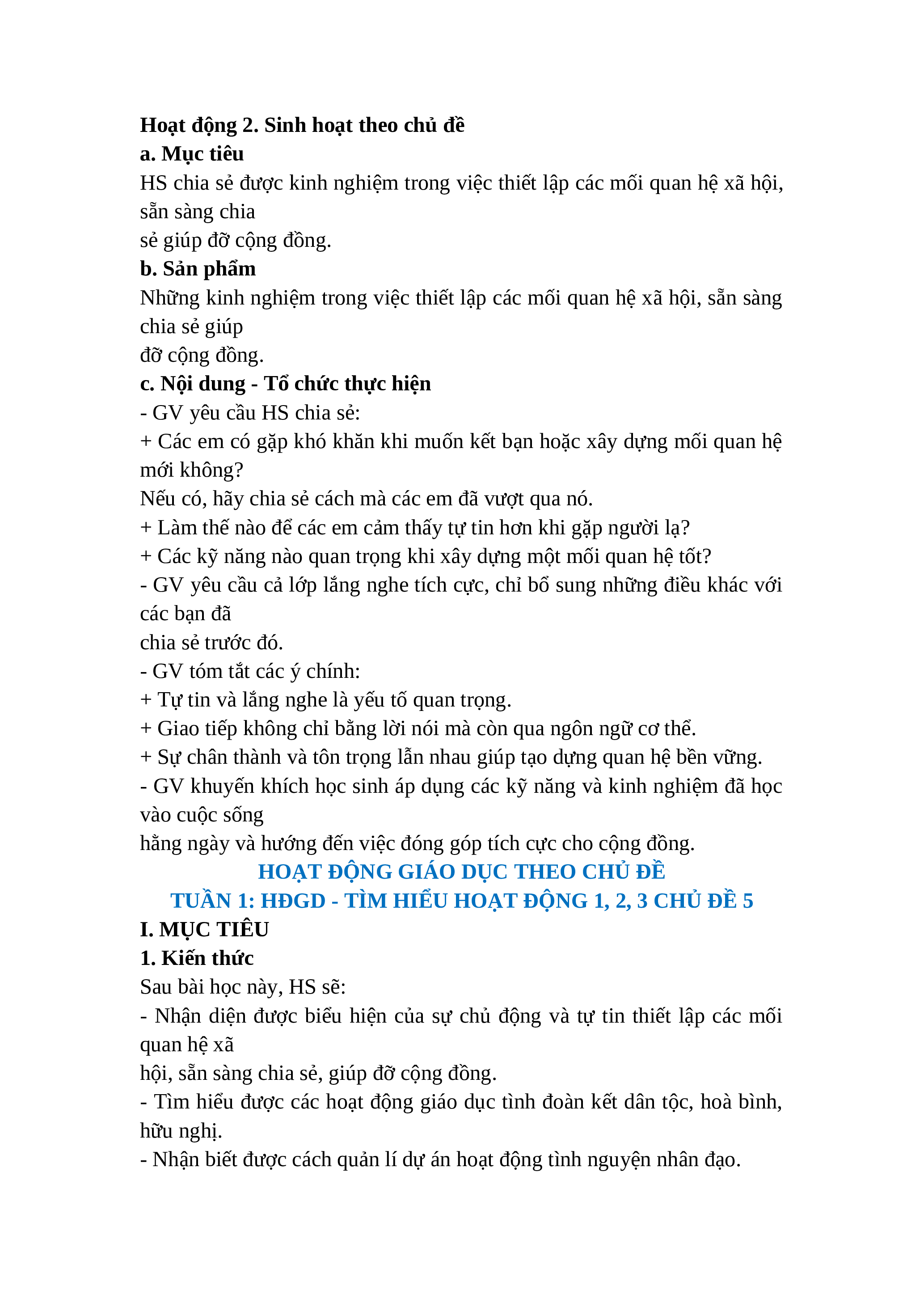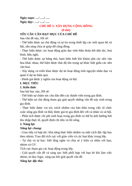 CHỦ ĐỀ 5: XÂY DỰNG CỘNG ĐỒNG (9 tiết)