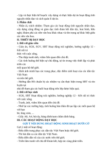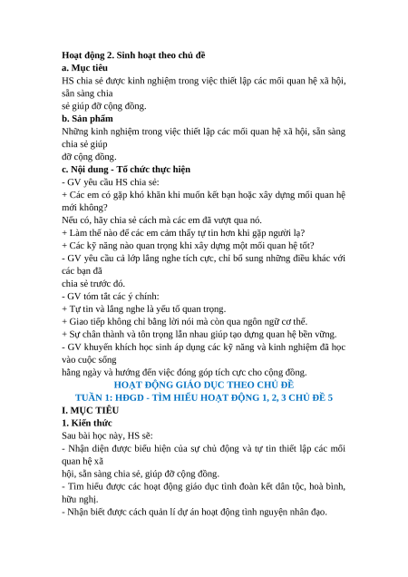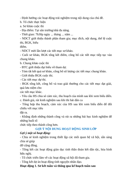 GỢI Ý NỘI DUNG HOẠT ĐỘNG SINH LỚP