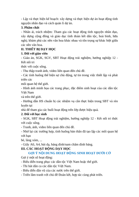 Bộ giáo án Hoạt động trải nghiệm 12 Kết nối tri thức đã cập nhật đủ Cả năm.