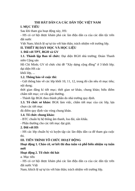 THI HÁT DÂN CA CÁC DÂN TỘC VIỆT NAM I. MỤC TIÊU