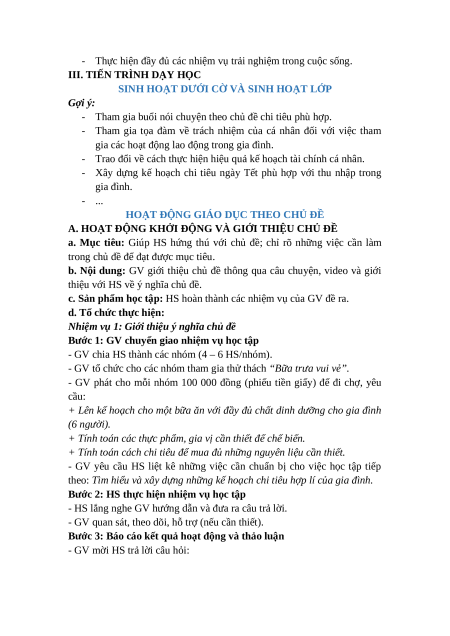 - Xây dựng kế hoạch chi tiêu ngày Tết phù hợp với thu nhập trong gia đình. - ...