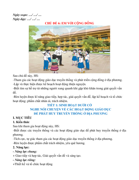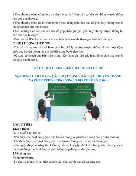 -Nêu được các hoạt động giáo dục truyền thống và phát triển cộng đồng ở địa phương.