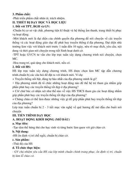 -Tích cực, tự giác tham gia các hoạt động giáo dục truyền thống ở địa phương. b. Nội dung: