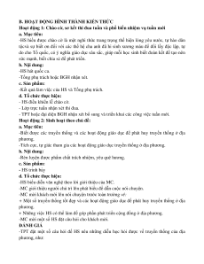 Hoạt động 1: Chào cờ, sơ kết thi đua tuần và phổ biến nhiệm vụ tuần mới a. Mục tiêu: