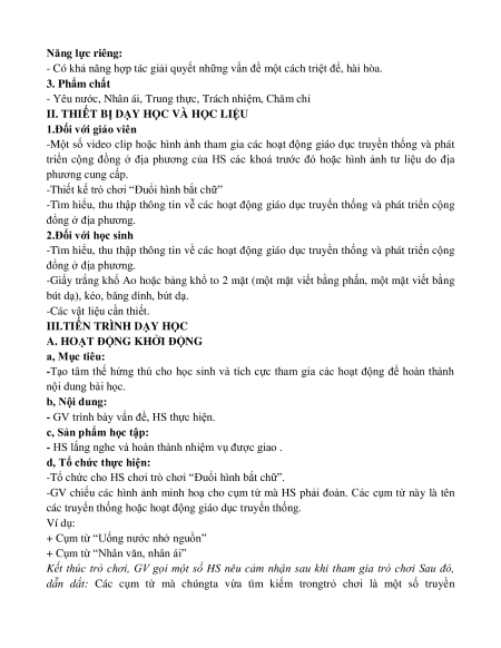 các hoạt động truyển thống và phát triển cộng đổng tại địa phương. 2.Về năng lực Năng lực chung:
