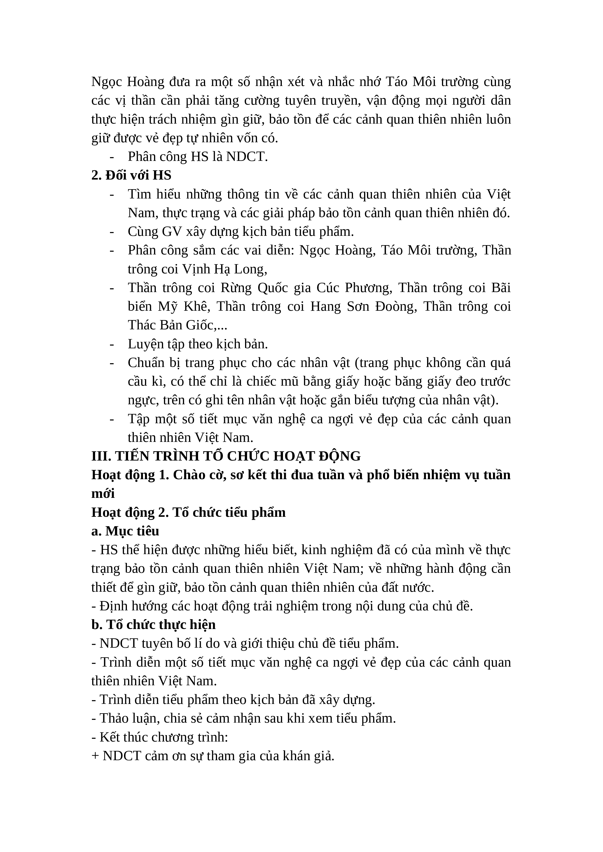 III. TIẾN TRÌNH TỔ CHỨC HOẠT ĐỘNG