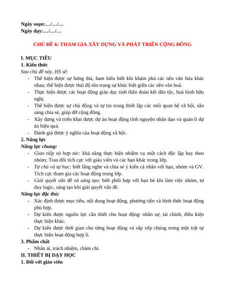 CHỦ ĐỀ 6: THAM GIA XÂY DỰNG VÀ PHÁT TRIỂN CỘNG ĐỒNG I. MỤC TIÊU 1. Kiến thức
