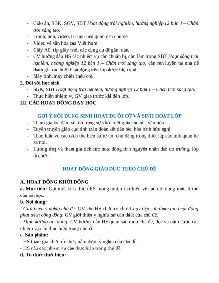 - Giáo án, SGK, SGV, SBT Hoạt động trải nghiệm, hướng nghiệp 12 bản 1 – Chân trời sáng tạo.