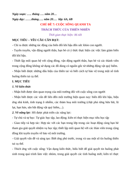 Ngày dạy: ……tháng….. năm 20…. lớp: 6A, 6B