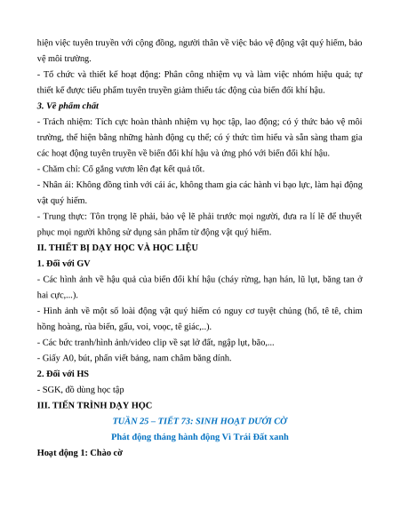 - Nhận biết được các vấn đề liên đến môi trường hiện quan nay: biến đổi khi hậu, hiệu