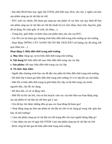 - Các HS còn lại tham gia chương trình biểu diễn thời trang môi trường tại sân trường.