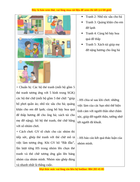 + Chuẩn bị: Các bộ thẻ tranh (mỗi bộ gồm 5
