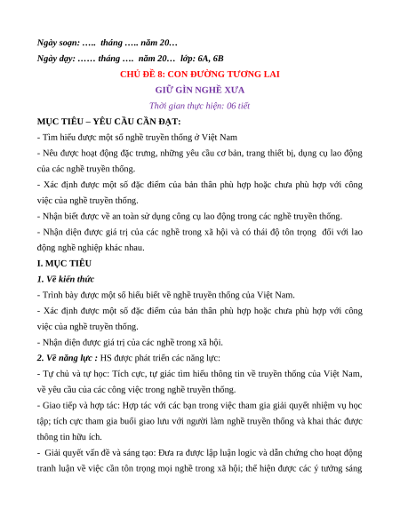 CHỦ ĐỀ 8: CON ĐƯỜNG TƯƠNG LAI GIỮ GÌN NGHỀ XƯA
