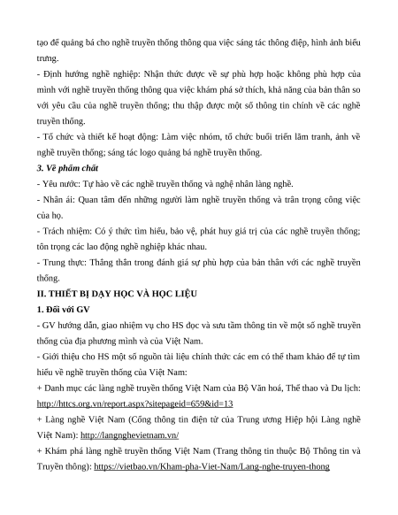 - Yêu nước: Tự hào về các nghề truyền thống và nghệ nhân làng nghề.