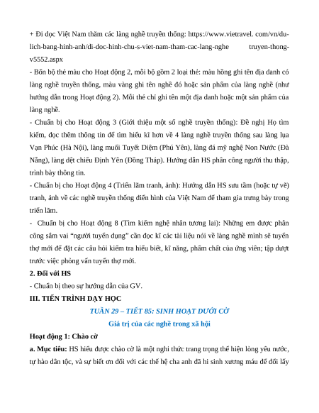 - Chuẩn bị cho Hoạt động 3 (Giới thiệu một số nghề truyền thống): Đề nghị Họ tìm
