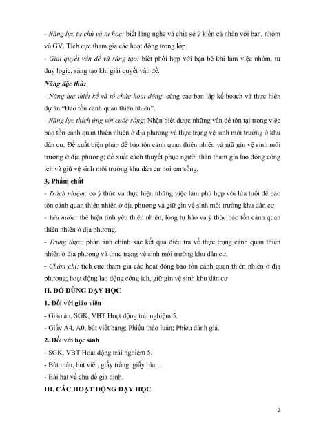 ích và giữ vệ sinh môi trường khu dân cư nơi em sống. 3. Phẩm chất