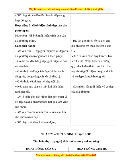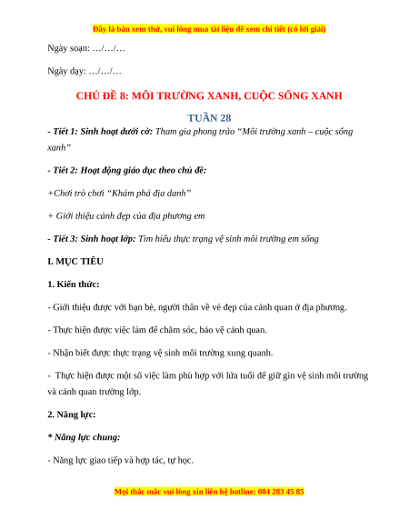 CHỦ ĐỀ 8: MÔI TRƯỜNG XANH, CUỘC SỐNG XANH TUẦN 28