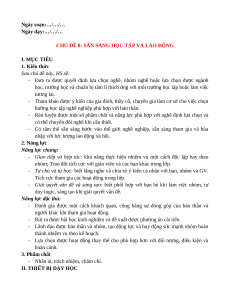 CHỦ ĐỀ 8: SẴN SÀNG HỌC TẬP VÀ LAO ĐỘNG I. MỤC TIÊU 1. Kiến thức