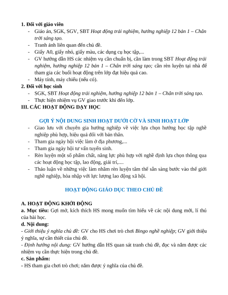 - Giáo án, SGK, SGV, SBT Hoạt động trải nghiệm, hướng nghiệp 12 bản 1 – Chân trời sáng tạo.