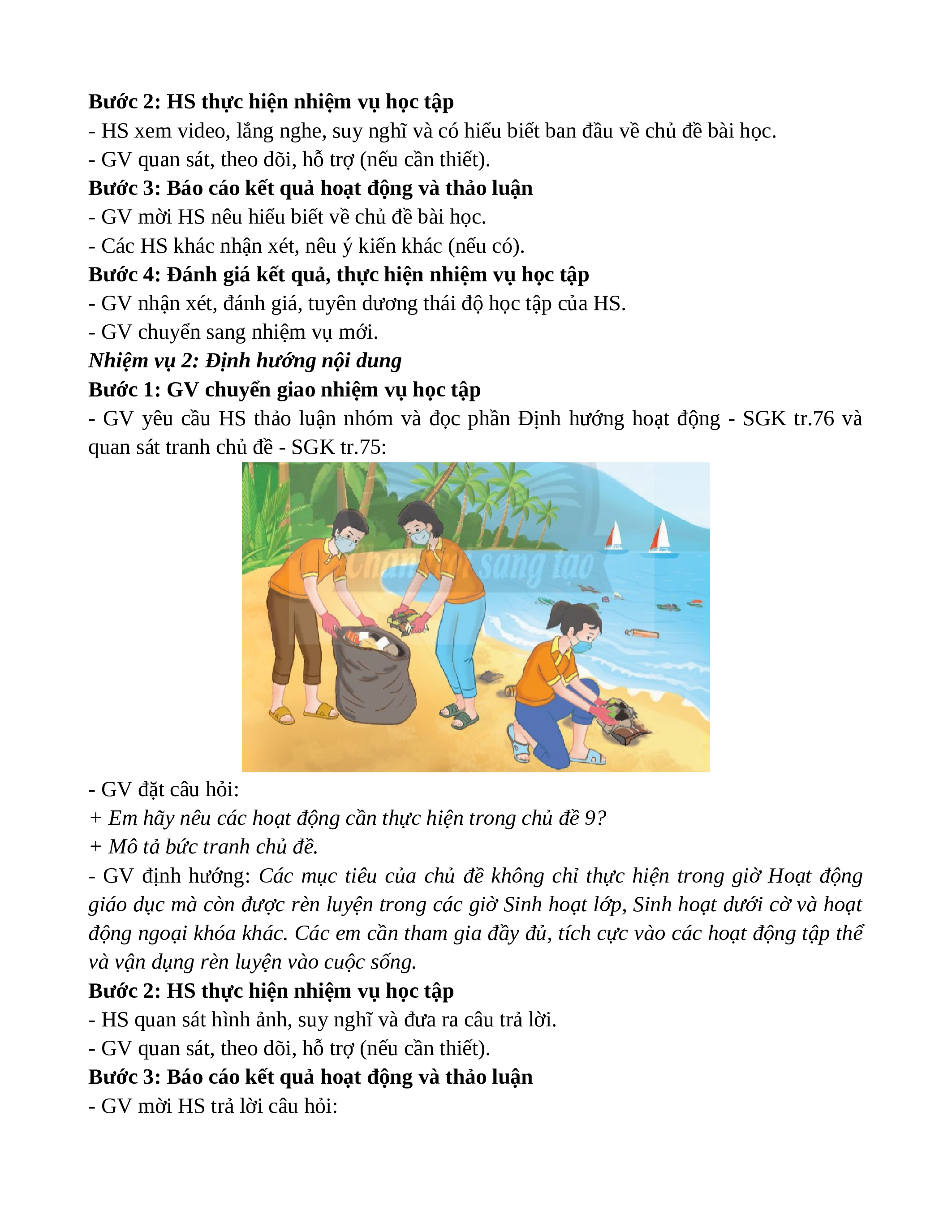 - GV yêu cầu HS thảo luận nhóm và đọc phần Định hướng hoạt động - SGK tr.76 và