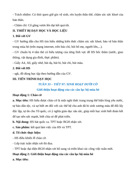 TUẦN 33 – TIẾT 97: SINH HOẠT DƯỚI CỜ