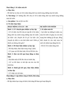 Hoạt động 1: Kỉ niệm mùa hè a. Mục tiêu: