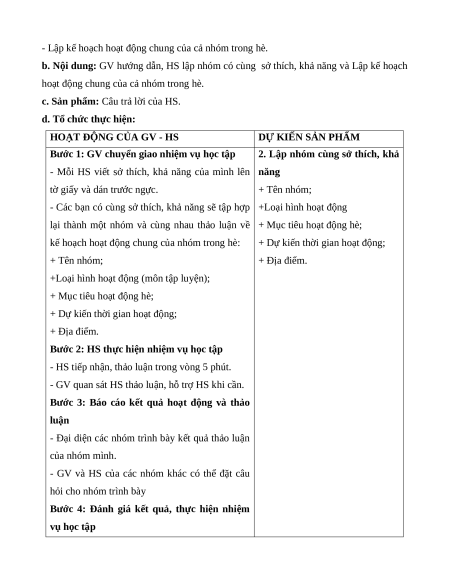 - HS lập nhóm bạn cùng sở thích, khả năng để tham gia hoạt động hè.