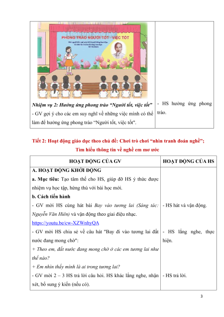 Tiết 1: Sinh hoạt dưới cờ: Phong trào “người tốt, việc tốt” HOẠT ĐỘNG CỦA GV HOẠT ĐỘNG CỦA HS a. Mục tiêu: