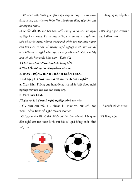 nghiệp mơ ước của các bạn trong lớp. b. Cách tiến hành