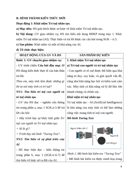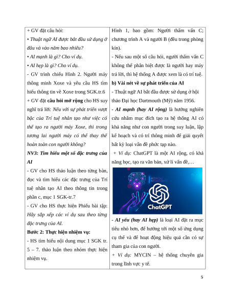 - GV cho HS đọc – nghiên cứu thông Trí tuệ nhân tạo – AI (Artificial Intelligence)