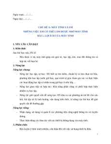 Giáo án Chủ đề A Bài 1 Tin học lớp 5 Cánh diều: Lợi ích của máy tính