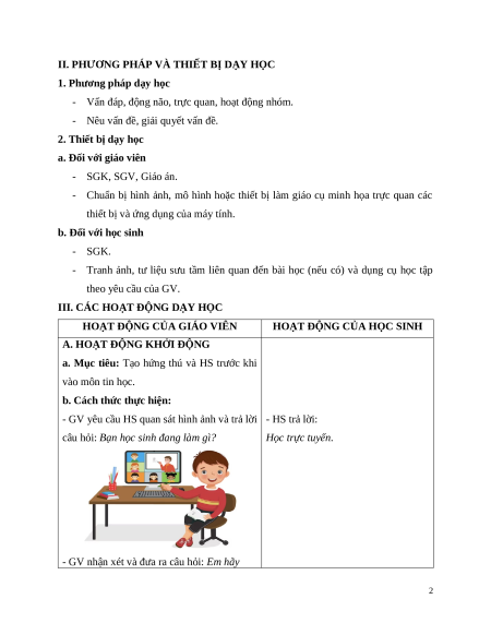 II. PHƯƠNG PHÁP VÀ THIẾT BỊ DẠY HỌC