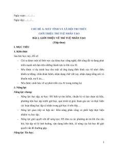 BÀI 2. GIỚI THIỆU VỀ TRÍ TUỆ NHÂN TẠO (Tiếp theo) I. MỤC TIÊU 1. Kiến thức