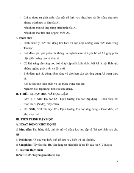 - Nêu được cảnh báo về sự phát triển của AI trong tương lai. 2. Năng lực