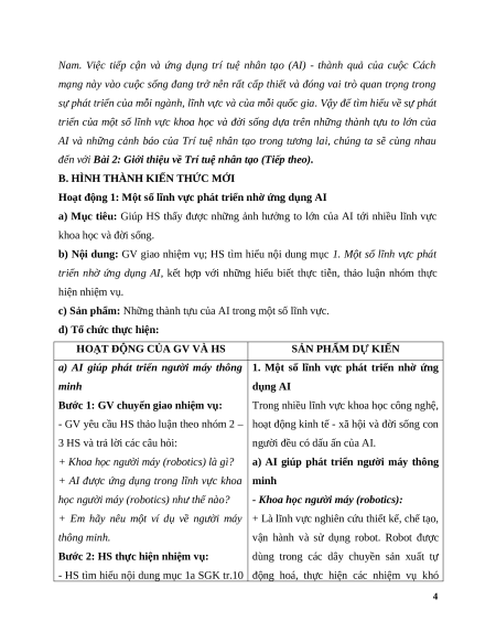 - Nêu được mặt trái của sự phát triển AI. 3. Phẩm chất