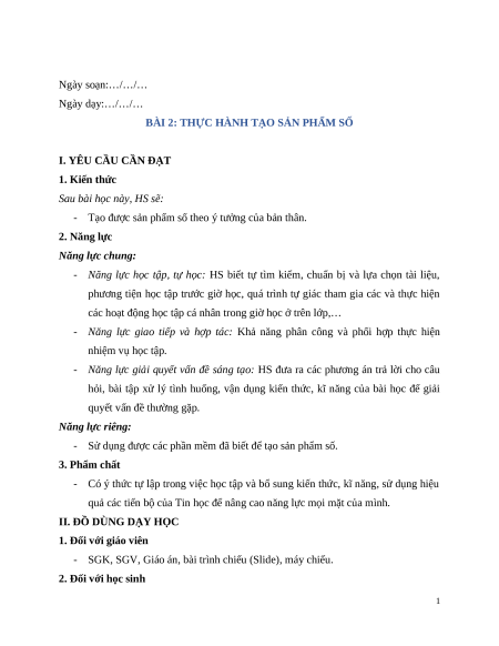 - Tạo được sản phẩm số theo ý tưởng của bản thân. 2. Năng lực