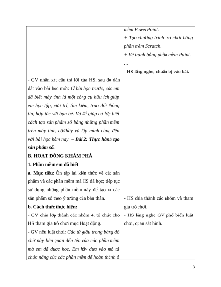 phẩm và các phần mềm mà HS đã học; tiếp tục