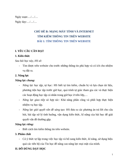 Giáo án Chủ đề B Bài 1 Tin học lớp 5 Cánh diều: Tìm thông tin trên website