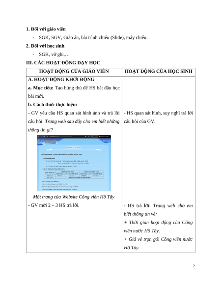 III. CÁC HOẠT ĐỘNG DẠY HỌC