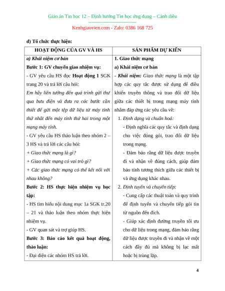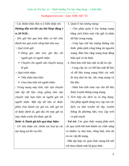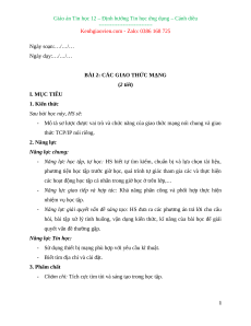 Giáo án Chủ đề B Bài 2 Tin học 12 Cánh diều: Các giao thức mạng