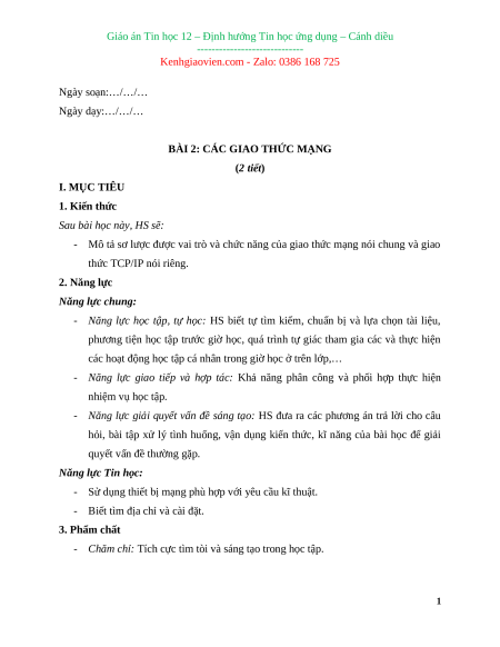 Kenhgiaovien.com - Zalo: 0386 168 725 Ngày soạn:…/…/… Ngày dạy:…/…/…