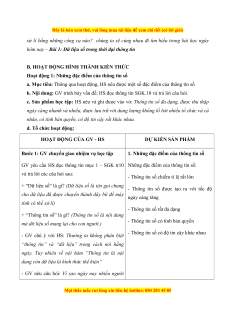BÀI 1: DỮ LIỆU SỐ TRONG THỜI ĐẠI THÔNG TIN I. MỤC TIÊU 1. Mục tiêu Sau bài học này, HS sẽ: