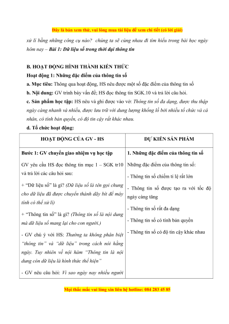 Hoạt động 1: Những đặc điểm của thông tin số