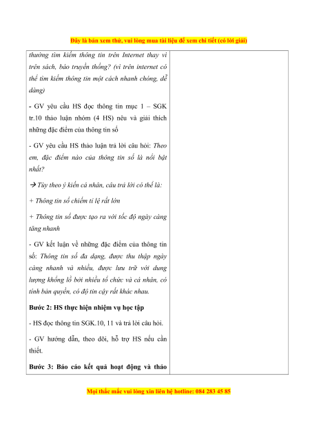 - Nêu được các đặc điểm của thông tin số