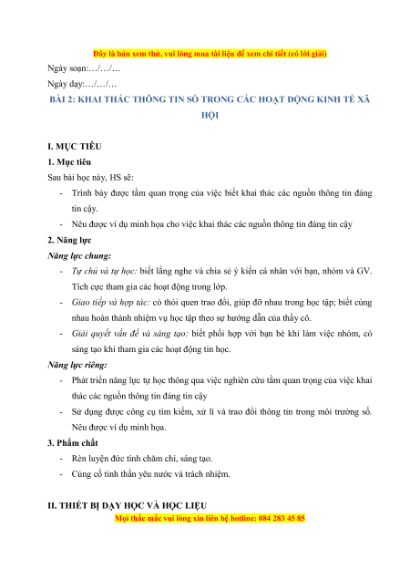 Đây là bản xem thử, vui lòng mua tài liệu để xem chi tiết (có lời giải) Ngày soạn:…/…/… Ngày dạy:…/…/…