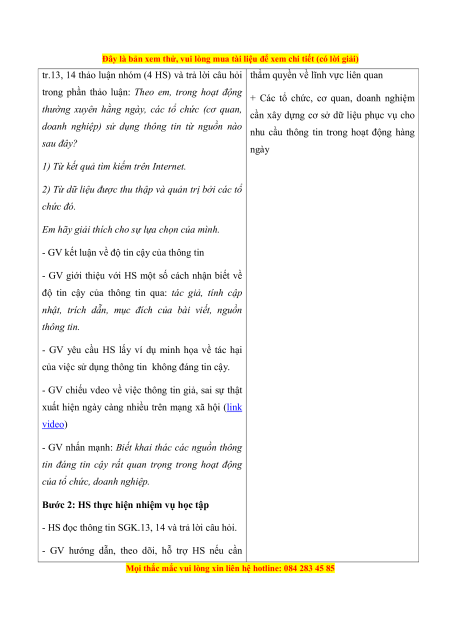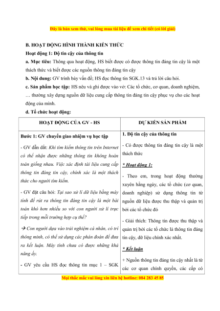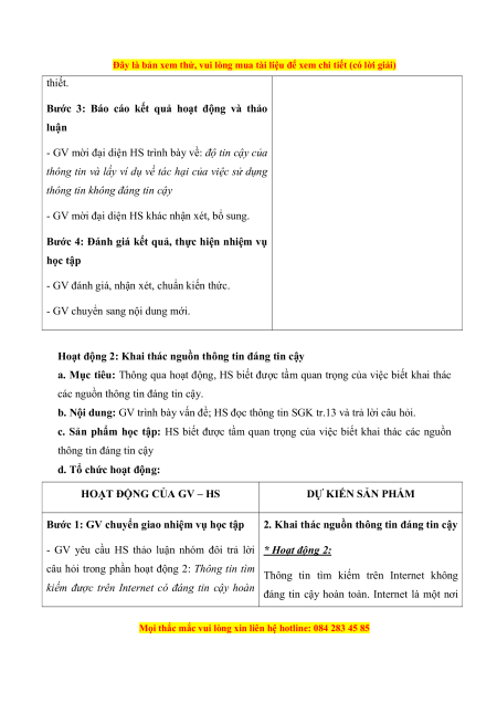 - HS bàn luận về “độ tin cậy” của thông tin tìm kiếm được.