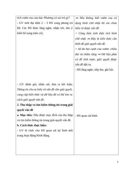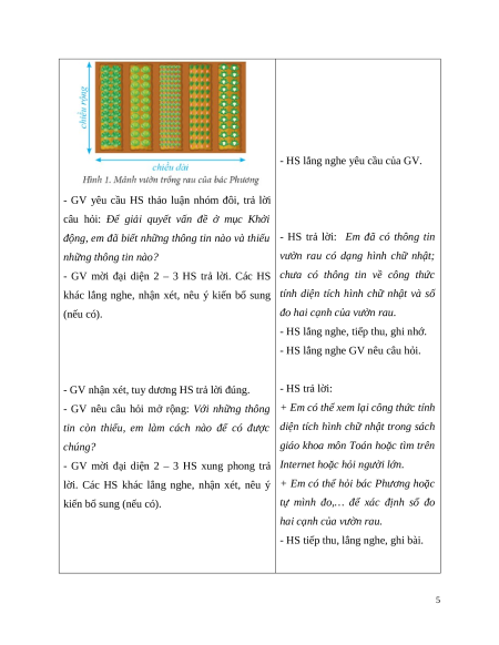 động, cho biết: Những thông tin giúp tính diện + Vườn rau có dạng hình chữ nhật 3