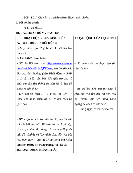 BÀI 2: THỰC HÀNH TÌM KIẾM VÀ CHỌN THÔNG TIN TRONG GIẢI QUYẾT VẤN ĐỀ